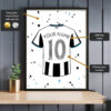 Add any name and number to the classic stripes, printed on high-quality gloss paper with a brilliant shimmering effect.