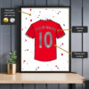 Personalise it with any name and number, inspired by the classic bright-red Forest colours. Printed on premium gloss paper, the foil gives a modern shine perfect for home displays.