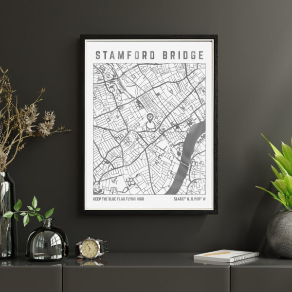 Celebrate the heart of West London football with this Stamford Bridge location foil print, crafted using the exact coordinates of Chelsea’s legendary home ground.