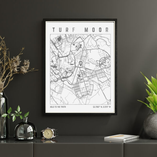 Celebrate the heritage of Lancashire football with this Turf Moor location foil print, designed using the exact coordinates of Burnley’s historic home ground.